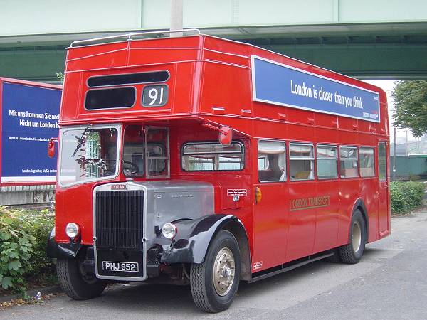 Ex-Southend PD3 313, PHJ952, now working as a non PSV with London Bus Export Company of Chepstow. Shame about the London Transport red but that's what the customer wanted!