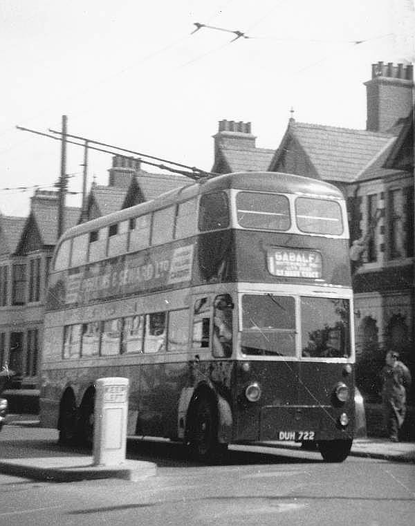 Cardiff 227, DUH722, a BUT 9641T with East Lancs H38/29R bodywork, approaching the Gabalfa terminus.