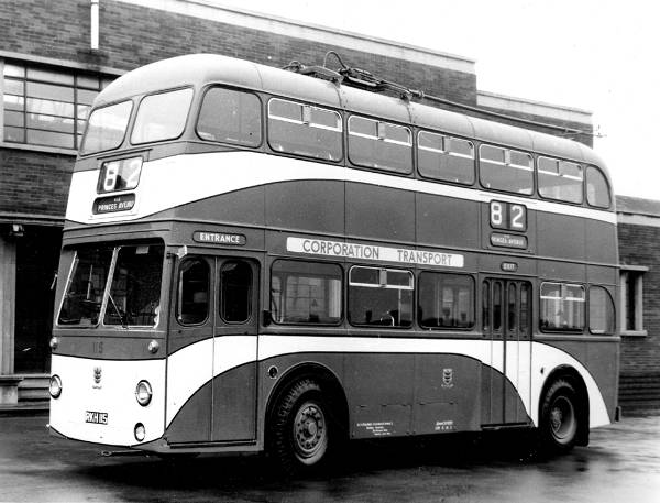Hull 115, RKH115, was a Sunbeam MF2B with a Roe H30/24D body, new in 1955, seen outside the offices of Roe before delivery.