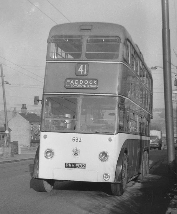 Huddersfield 632, PVH932, one of Huddersfield's final batch of trolleybuses, a Sunbeam S7 with East Lancs H40/32R body delivered in 1959.