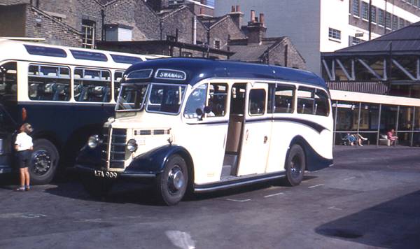 Southern National 1433, LTA909, a Duple Vista C29F bodied Bedford OB new in 1949 seen in Royal Blue livery loads for Swanage at Victoria Coach Station.