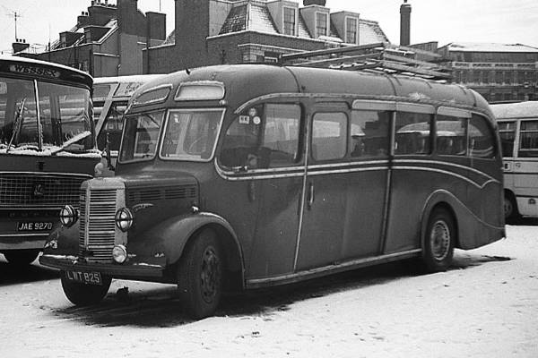 According to PSV Circle publications this vehicle began its life registered LYB125, when new, in October 1949 to BJ Chinn (English Rose Coaches), Wincanton and was re-registered LWT825 in June 1952 when it was acquired by Alfred Hymas Ltd, Burton Leonard (Alfred Hymas (Ripon) Ltd, Ripon from June 1960), who ran it until January 1963. In May 1963 it passed to H Cawthorne (Majestic Coaches), Darton, who had withdrawn it 'by March 1970' (I would suggest 'by November 1969' would be more accurate as it doesn't look likely that it was still theirs on the date of the photo, particularly with its roof rack!). It is then recorded as being acquired by Ellers High School, Doncaster 'around November 1971'. Of course, it may simply be that the school had had it from November 1969 or thereabouts. Any further information on reason for the re-registration in 1952 or the later years of its life would be welcomed.