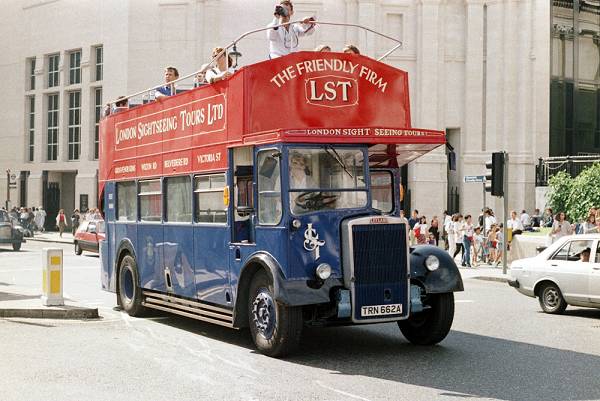 An open top and much rebuilt PD2 with London Sightseeing Tours, photographed here carrying the registration TRN662A, originally Barrow 165, CEO952, a Park Royal bodied Leyland Titan PD2/40 new in 1958