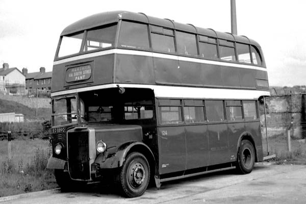Merthyr Tydfil 124, EO8892, was one of ten Leyland PD2/3s with Park Royal H30/26R bodies, acquired from Barrow Corporation in October 1961, entering service in January 1962.