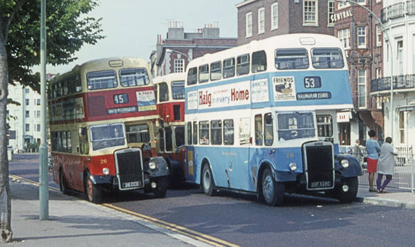 Brighton Corporation 26 and 28, 26CCD and BUF528C, Leyland PD2/37s with Weymann H37/27F bodies, new in 1963 and 1965 respectively.