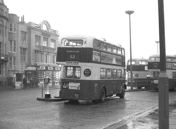 Rear view of Brighton Corporation 73, WCD73, a Leyland PD2/37 with Weymann H61R body, new in 1959