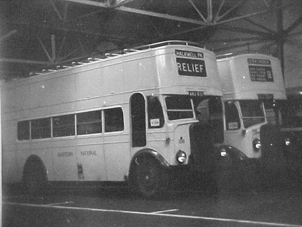 In the background Eastern National 1008, GJ2011, an AEC Regent built in 1930 and rebodied by ECW OT59R in 1945, ex-Brighton Hove & District in 1954 and in front, another open-topper, 1248, ANJ831, a pre-war Bristol GO5G, also ex-Brighton Hove & District - 1248 lasted in the ENOC fleet until 1959.