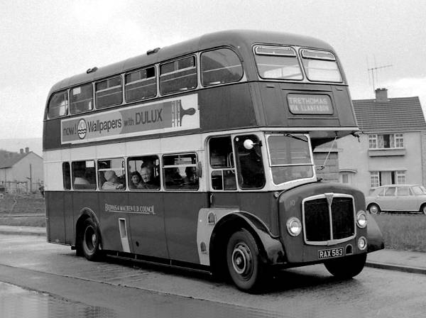 Bedwas & Machen 10, RAX583, was an A.E.C. MD3RV Regent V new in 1957 with a Massey L29/28R body.