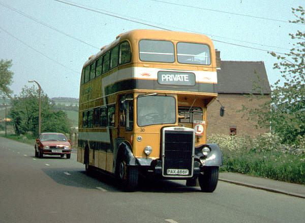 PAX466F is seen in Stevenson's livery with driver training, a Leyland PD3 now preserved by the Cardiff Transport preservation group. It was new to Bedwas and Machen in 1967, said to be the last lowbridge bus built.