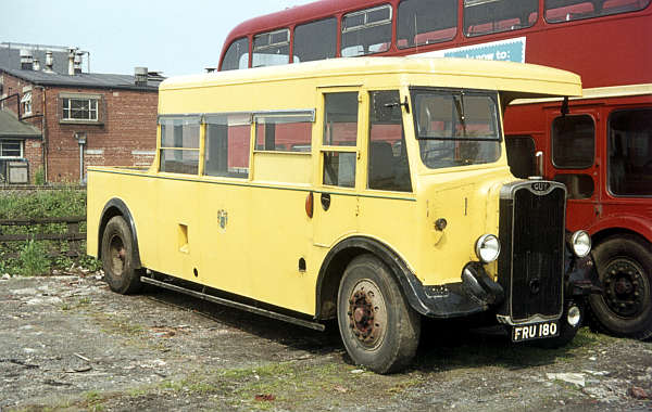 At North's, the dealer, Sherburn-in-Elmet, former Bournemouth Corporation Guy Arab I (6LW) tow-wagon FRU180. This had started out with a Park Royal H30/26R body, numbered 33 and new in 1943.