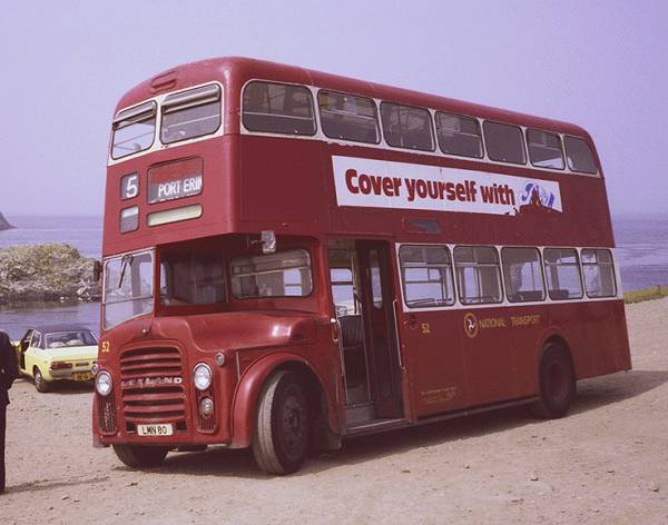 Isle of Man National Transport 52, LMN80, a Leyland Titan PD3A/1 with Weymann H39/30F body. New to Bournemouth Corporation as their 169 (6169RU) in 1963 it passed to Isle of Man Road Services in 1974 as their 80, passing again to IOMNT in 1976.