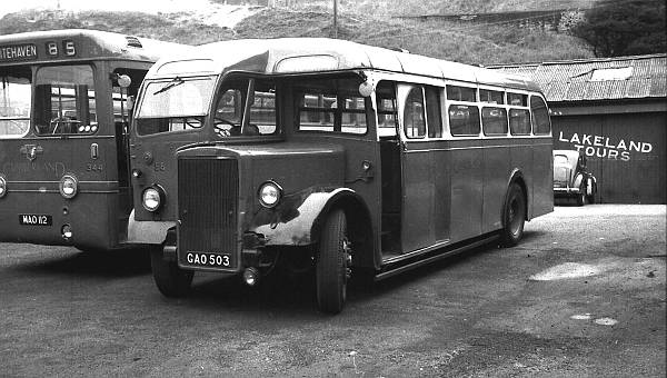 One of five Leyland PS1s with Massey B32F bodies new in 1947, Cumberland 58, GAO503, was withdrawn in 1959 and passed to Millburn Motors (dealer), Preston in November and then to Contract Bus Services Limited, Llanwern in May 1960.