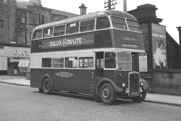 Seen at Hamilton Central Station Laurie, Hamilton (t/a Chieftain) 61, JXN362, was a 1949 Leyland 7RT with a Park Royal H30/26R body acquired from London Transport (RTL39) which became Central S.M.T. HL196 in October 1961 when the Laurie business was taken over.