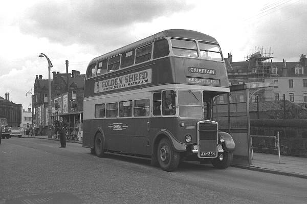 Laurie, Hamilton (t/a Chieftain) 63, JXN334, a Leyland 7RT with a Park Royal H30/26R body new in 1948 as RTL14, later became HL193 in the Central S.M.T. fleet.