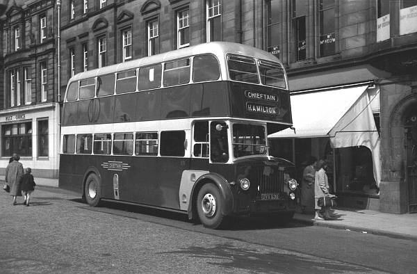 Laurie, Hamilton (t/a Chieftain) 69, UVA638, seen in Brandon Street, Hamilton was a Leyland PD3/2 with a Massey H41/31F body new in 1959. When the Laurie business was acquired in October 1961 it became Central S.M.T. HL209.