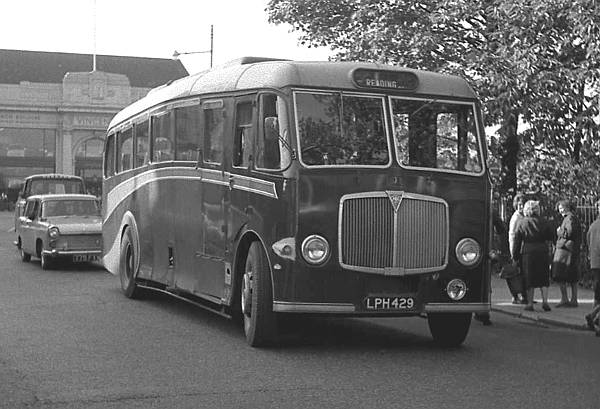 LPH429, seen in Reading, was a Maudslay Marathon III with a Whitson FC33F body operated by Chiltern Queens, Woodcote. An A.E.C. Mark V grille has been added at some time.