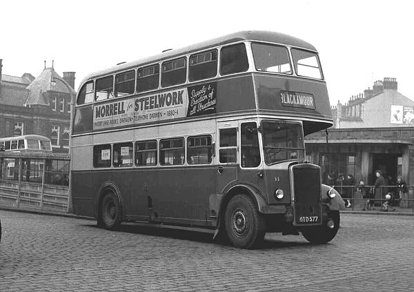Darwen 11, OTD577 was a Leyland PD2/10 with a Leyland H30/26R body seen at Darwen Circus