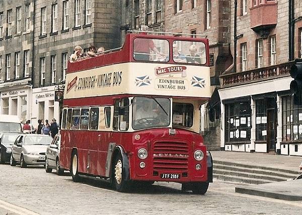 Darwen 40, JTF218F, a 1968 Leyland Titan PD2A/47 with East Lancs bodywork is seen in Edinburgh while working as an open top tour vehicle for Mac's Tours.