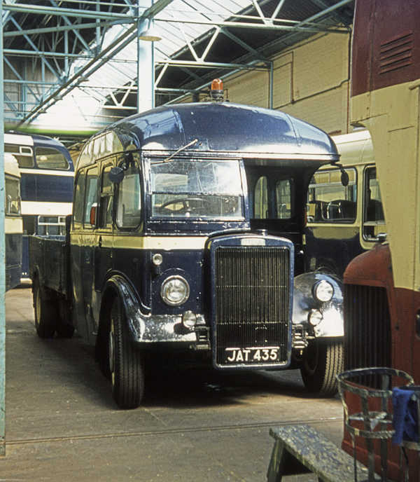 The lorry conversion - involving removing the middle section of the bodywork and reattaching the rear end to the front end to form a crew cab, then adding a dropside body - was similar to conversions done for Yorkshire Woollen (also on a PS1/Brush) and Hebble (on a Regal 0662/Weymann) by Spen Engineering, but I do not know whether Spen were responsible for this one also.