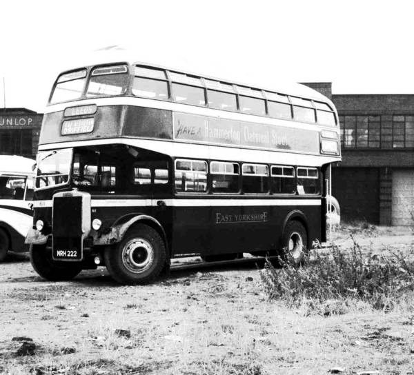 East Yorkshire 611, NRH222, a Leyland PD2/12 with Roe H30/26R body which joined the fleet, as one of seven, in 1953 seen in Leeds operating a journey to Bridlington.