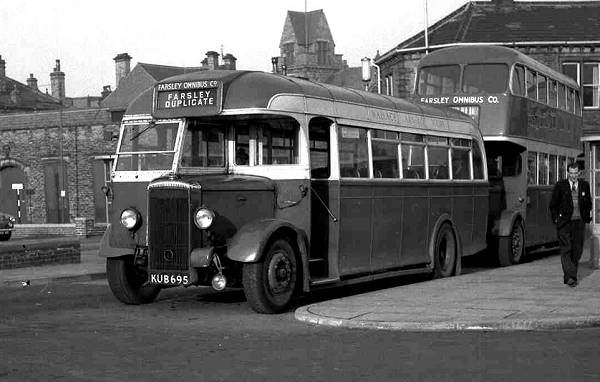 KUB695, a Daimler CVD6 with Roe B35F body was new to the Farsley Omnibus Company in 1948 as fleet number 8.