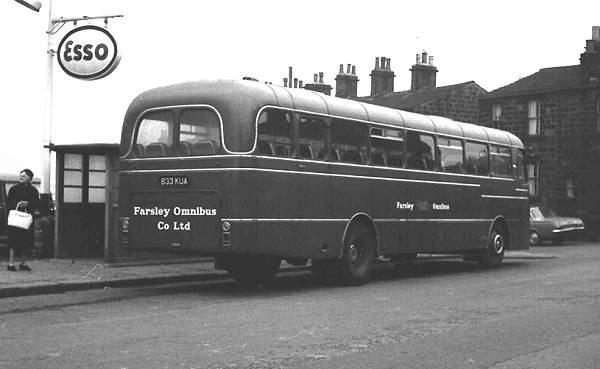 Farsley Omnibus Company was acquired by Wallace Arnold in 1956 and they added 833KUA to the fleet in 1964. It was a Plaxton Highway DP51F bodied Leyland PSU3/2R Leopard, this rear view being taken at the Horsforth terminus of the route from Pudsey.