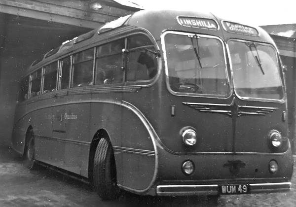 Farsley Omnibus WUM49 was a Leyland Tiger Cub PSCU1/2 with Burlingham 'Seagull' body. Starting life in 1956 in the Wallace Arnold coach fleet, it was down-rated to a bus (B43F) in 1961, using seats from a Rotherham trolleybus, and transferred to the Farsley subsidiary.
