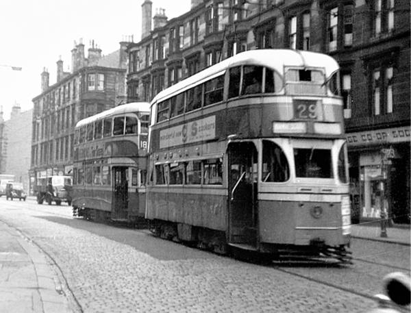 Breakdowns did occur sometimes as witnessed by an ex-Liverpool "streamliner", or "Green Goddess" as they were known in Glasgow, pushing a disabled Coronation tram up to Maryhill Depot.