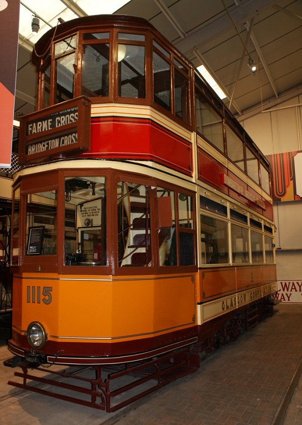 Glasgow 1115 is a 1929 version of the Glagow standard tram. It remained in service until 1961. It is now on display in the exhibition hall at the National Tramway Museum.
