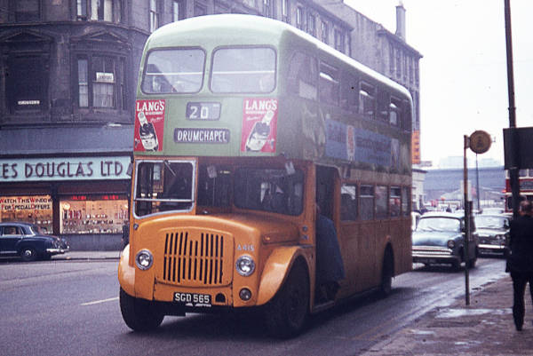 Glasgow Corporation A415, SGD565, was an Alexander H41/31F bodied AEC Regent V, new in March 1962.