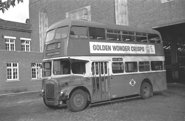 Seen outside the garage at Great Yarmouth is 12, FEX112, one of three Daimler CVG6s with Roe H37/28F bodies new in 1961.