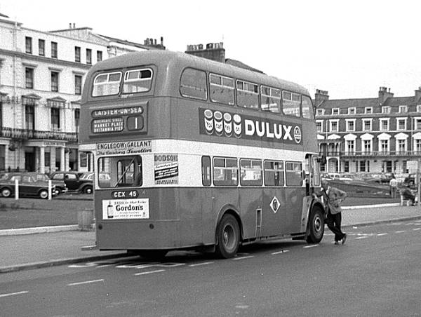 Rear view of Great Yarmouth 45, CEX45, an AEC Regent V with Massey H33/28R body, new in March 1959