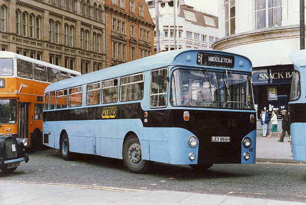 LEX866H, an AEC Swift with Willowbrook B43D body, seen with Citibus, Chadderton but originally Great Yarmouth 66 in June 1970, also 66 in the Citibus fleet.