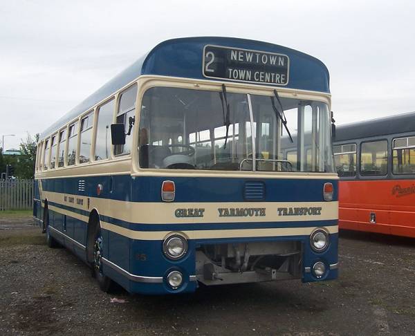 Great Yarmouth were keen AEC Swift buyers. Their last batch came in 1973 and had ECW bodywork based on the body for the Bristol RE. 85, WEX685M, is seen minus its front panel.
