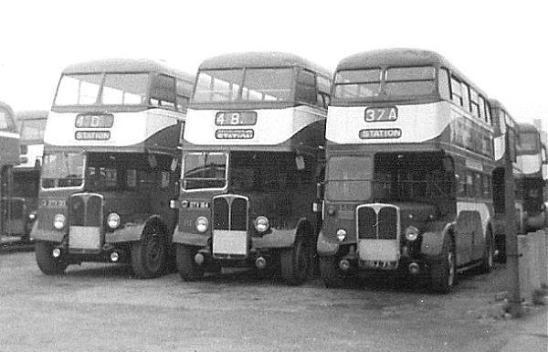 Hull bought several batches of second hand AEC Regent III in the 1960s and seen here are two examples 149, BDJ73, one of St Helen's famous replica RTs dating from 1950 and 161, OTV164, an ex Nottingham AEC Regent III with Park Royal body dating from 1954.
