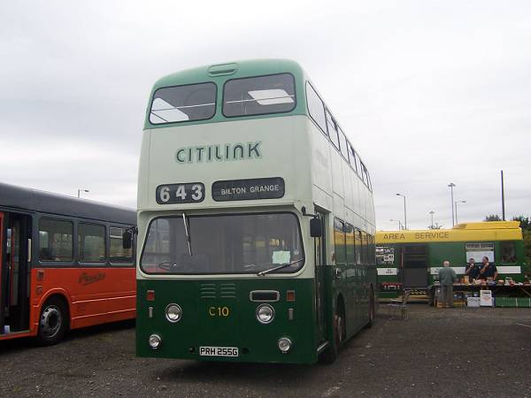 Kingston Upon Hull Leyland Atlantean with Roe bodywork wearing Citilink livery. Originally 255, PRH255G, it carries the unusual flat windscreen specifed by Hull.