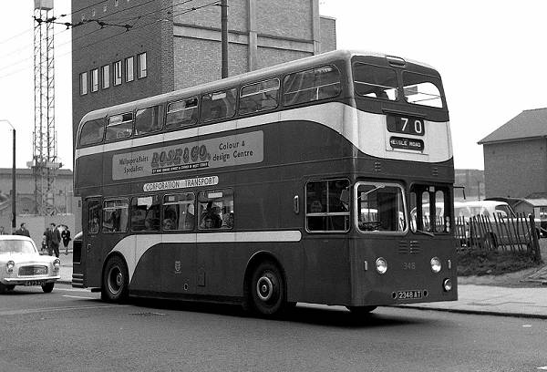 Photographed in Ferensway is Hull Corporation Transport Leyland Atlantean 348, 2348AT.