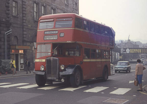 Huddersfield J.O.C. 239, HVH239, an AEC Regent III 9613E with East Lancashire L30/28R body, new in 1954.