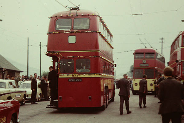 It is seen here on the final day of trolleybus operation at the Outlane terminus 909ft above sea level and the second highest trolleybus terminus in the UK. The highest was in the neighbouring Halifax trolleybus system at Mount Tabor at over 1000ft but that was only in operation for about 4 years in the 1920s.
