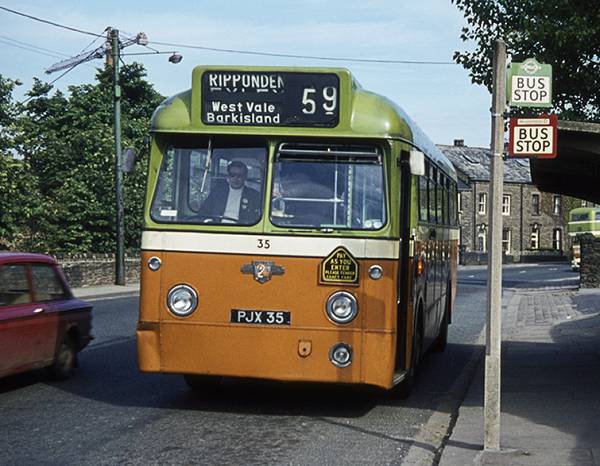 Halifax Corporation 35, PJX35, a Leyland Leopard L1 with Weymann B42F body, new in 1962.