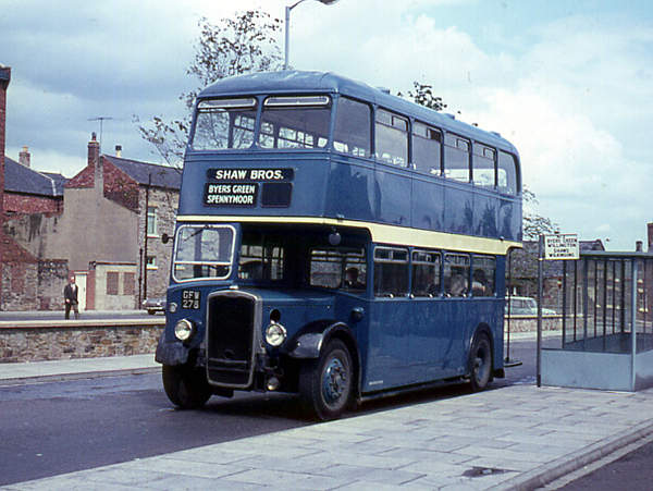 Shaw, Byers Green GFW278 seen in Spennymoor was a Bristol KS6B with an Eastern Coachworks H32/28R body which had been new as Lincolnshire 777 in May 1951. In 1953 it was renumbered 2130 and passed to Shaw in December 1965 via North (dealer), Sherburn.
