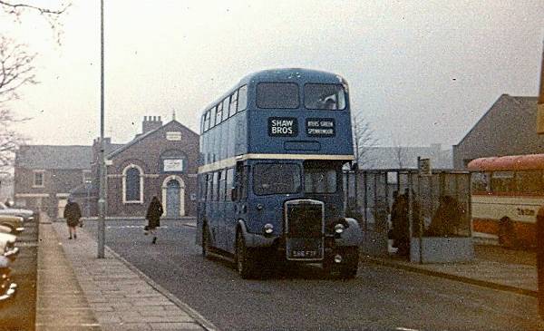 Lancs United bought many Leyland Titans over the years the last ones came in 1958 and were Leyland Titan PD3/4s with Metro Cammell bodywork. After withdrawal by LUT in 1970 649, 566FTF, found further employment with Shaw Brothers of Byers Green. It is seen on a murky day in Spennymoor.