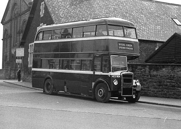 In April 1964 Shaw Bros., Byers Green acquired HCD904 from Southdown, where it had been number 304. It was a Leyland PD1 with a Leyland H28/26R body new in 1947 and is seen in Spennymoor.
