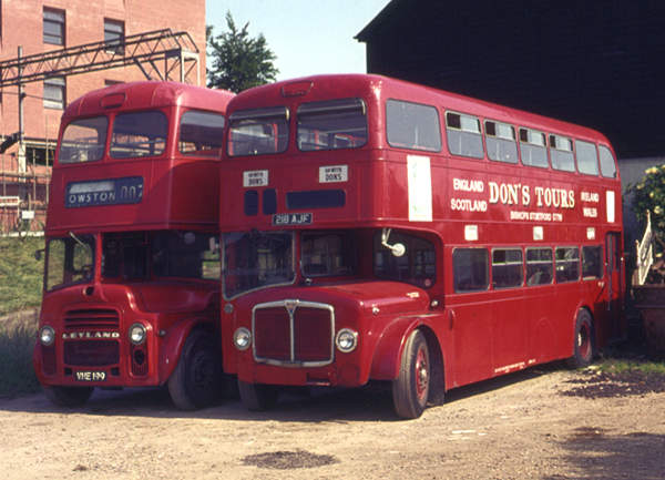 218AJF was an AEC Bridgemaster with Park Royal H41/31R body new in September 1961 while VHE199 was a Leyland PD3A/1 with Northern Counties H41/32F body, new in June 1961.