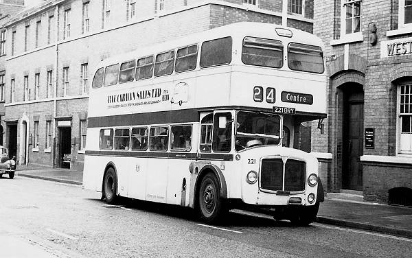 Leicester 221, 221DRY, a 1962 AEC Bridgemaster with rear entrance Park Royal bodywork. This bus was withdrawn in 1971 after just 9 years service.
