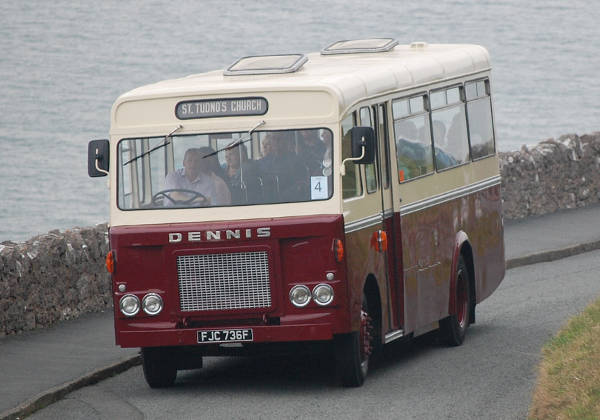 Now restored to Llandudno livery, FJC736F was one of two Dennis Pax with Dennis B33F bodies. Seen here on the Sunday evening road run around the Great Orme as part of the Llandudno Transport Festival 2014.