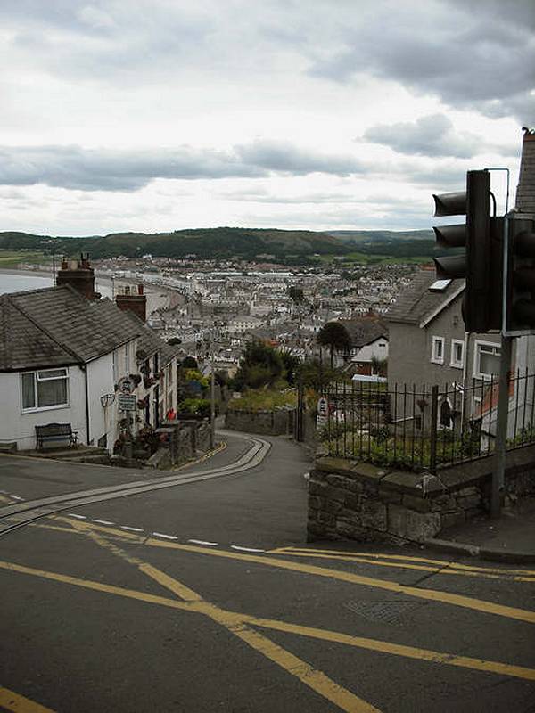The tram is on Ty-Gwyn Rd looking down Old Road, with Llandudno Bay in the distance. This clearly shows the conduit housing the cables and this doesn't give a true feel of the near-vertical incline of the roads at this point.