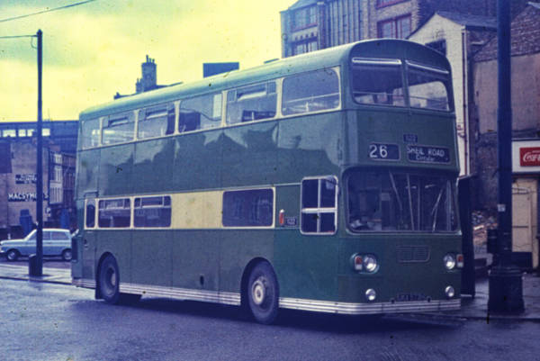 Liverpool Corporation 1121, UKA573H, a Leyland Atlantean PDR2/1 built in 1969/70 with Alexander H47/32D bodywork.