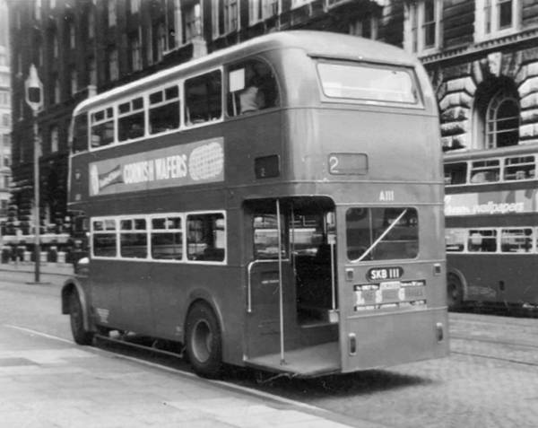 Liverpool Corporation A111, SKB111, a 1955 AEC Regent V with Crossley H32/26R bodywork.