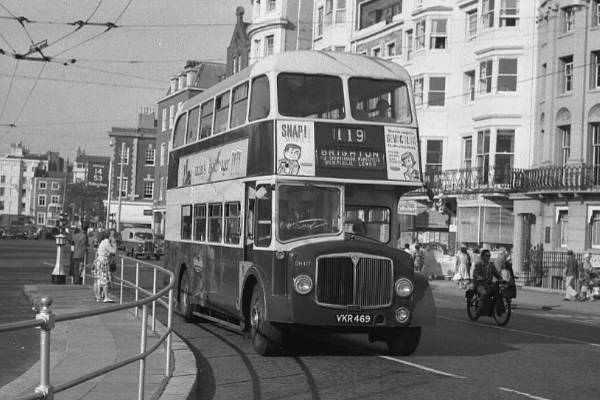 Maidstone & District DH477, VKR469, was an A.E.C MD3RV Regent V with a Park Royal H33/26RD body seen here in Brighton.